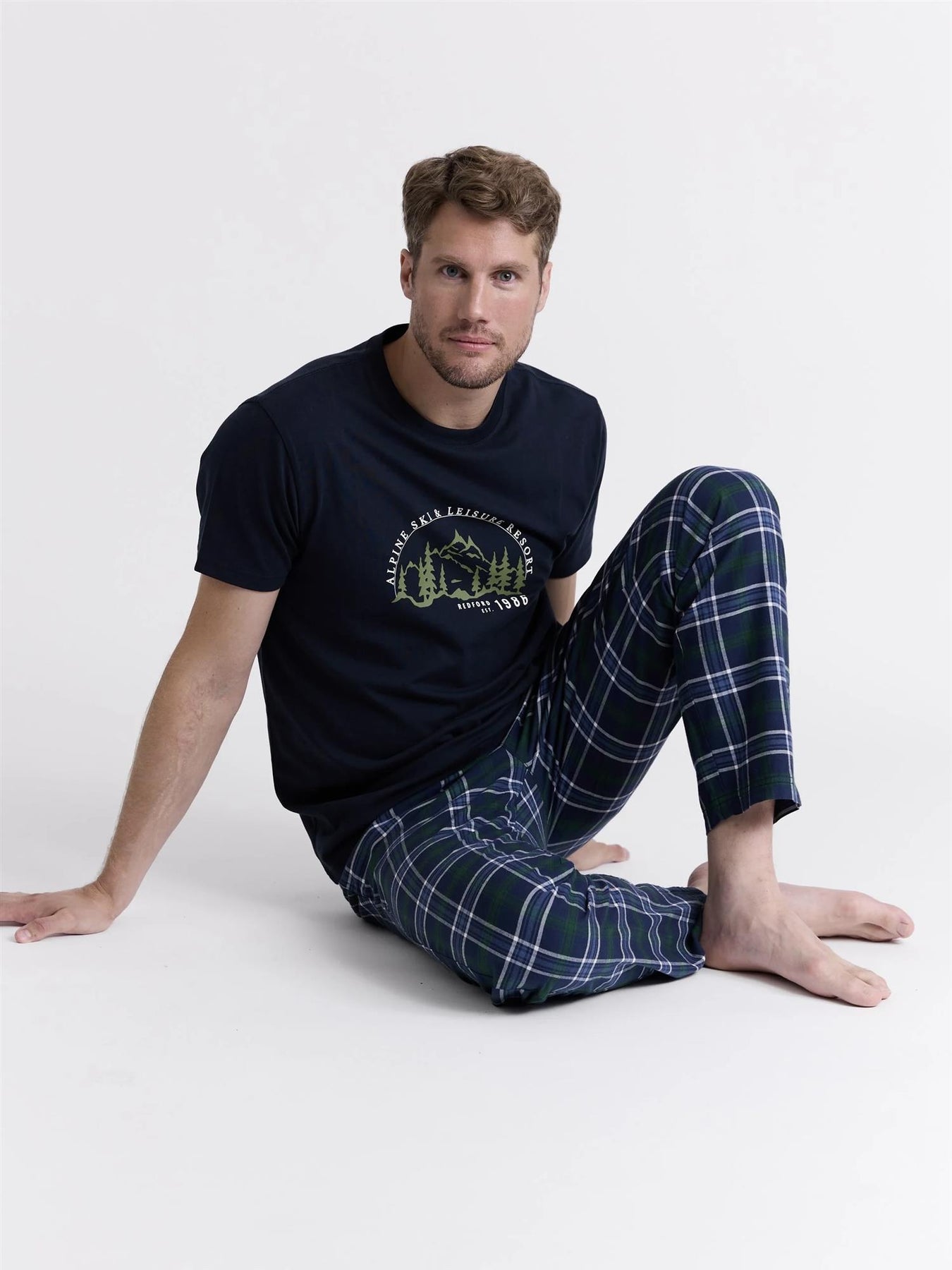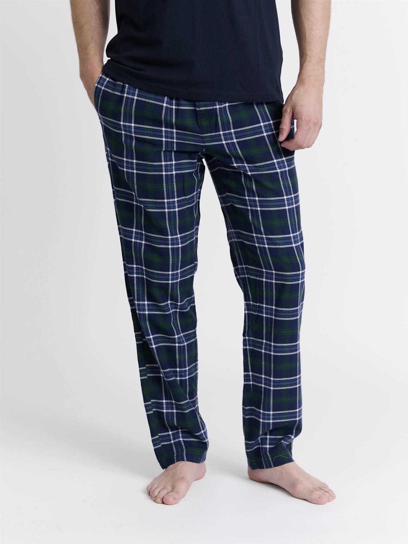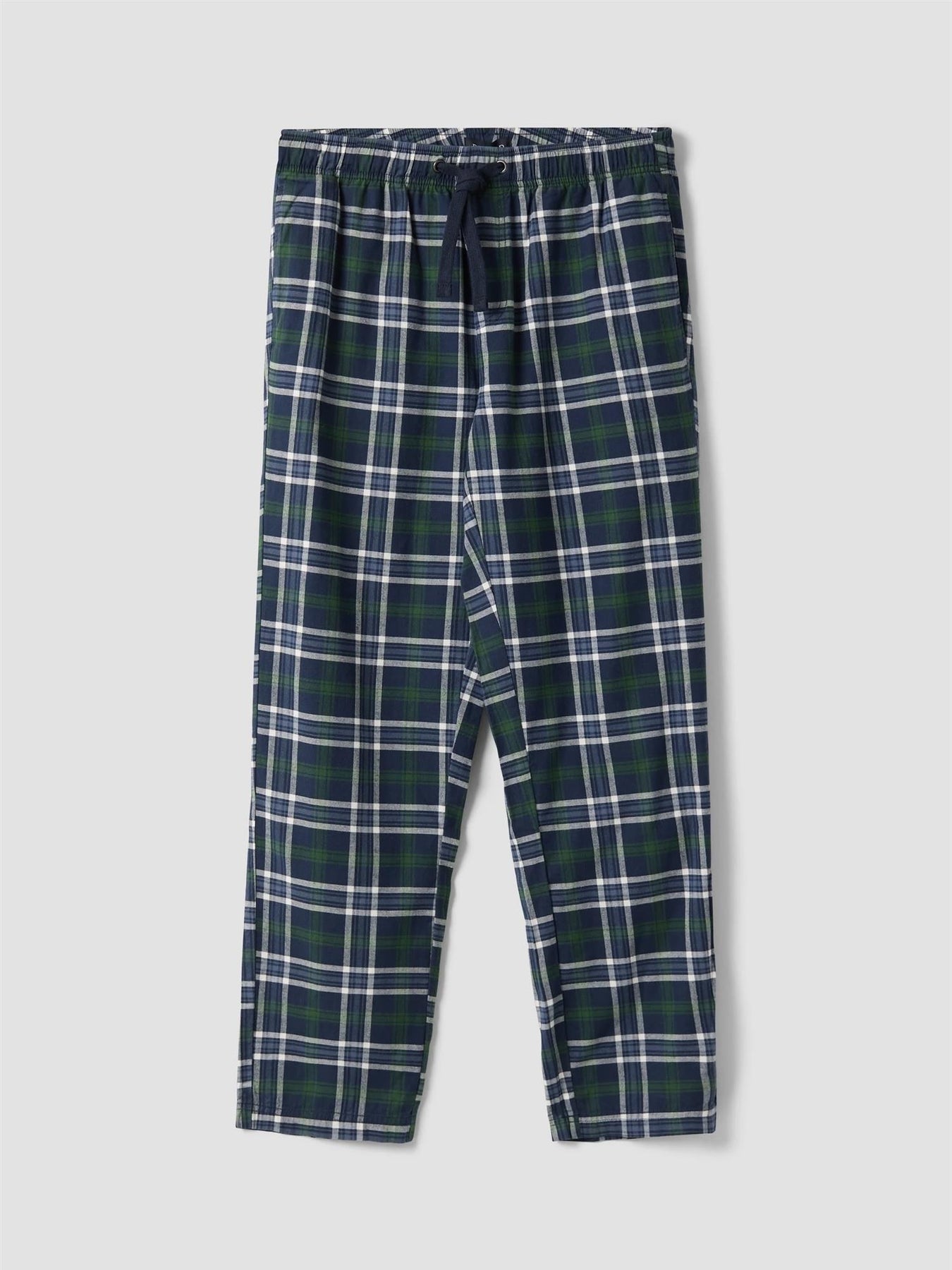 Komfortabel rutete pysjbukse i myk børstet bomull. Buksen har rette ben, strikk og snøring i livet og stikklommer.