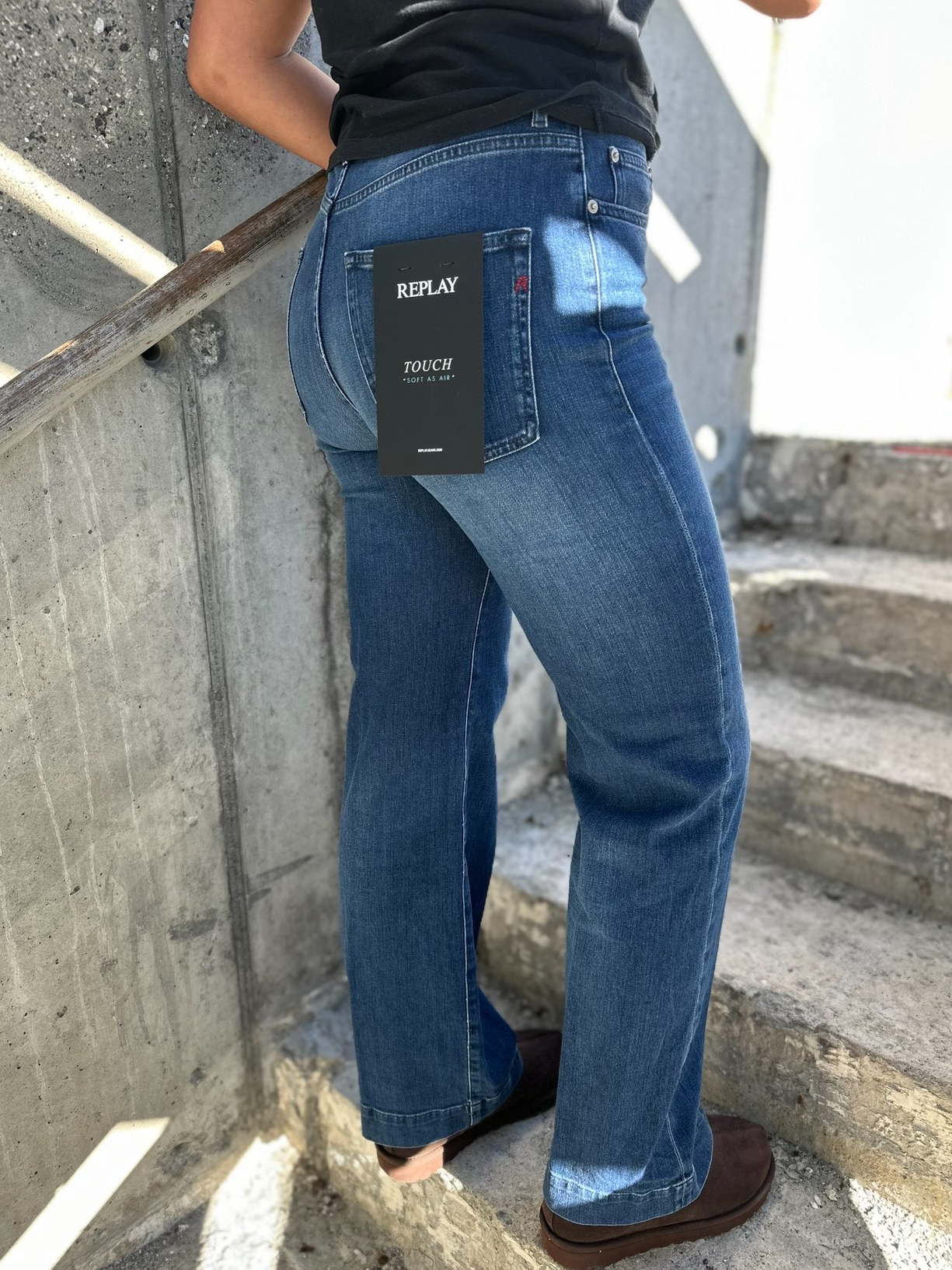 Replay Touch Jeans kombinerer stil med mykt stretchdenim som føles myk og behagelig. Med høyt liv, rette ben og en klassisk mellomblå vask er dette jeansen som passer til alle anledninger! Normal i størrelsen.