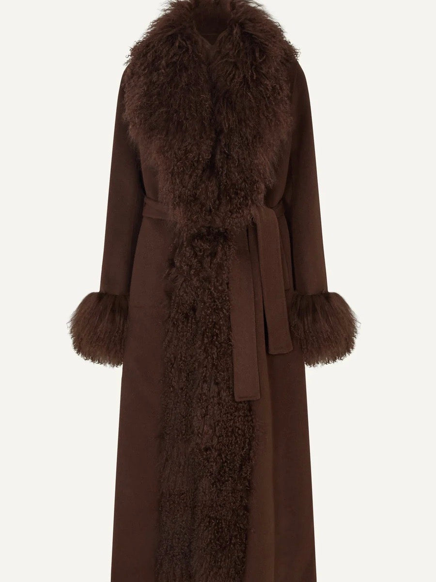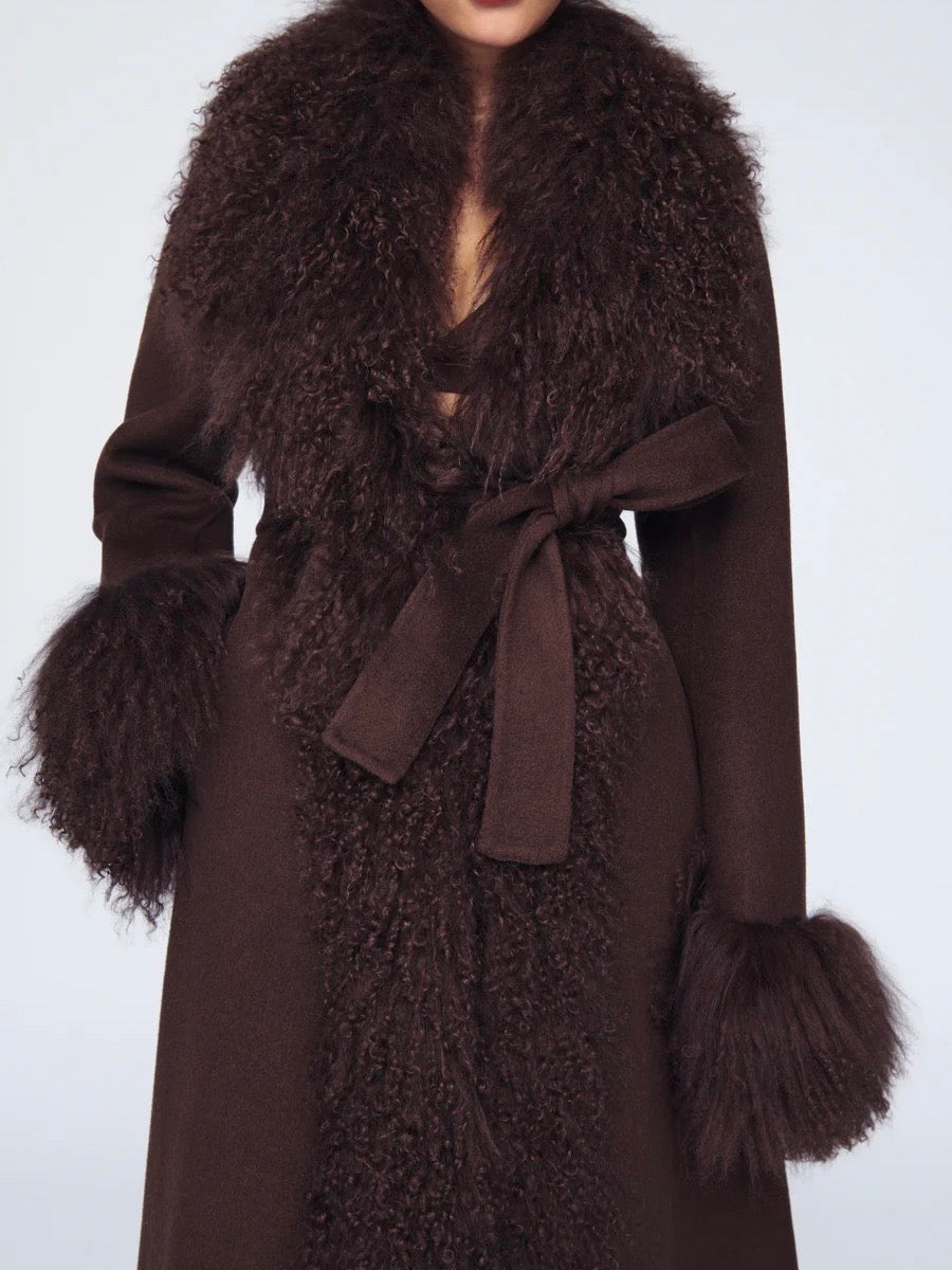 Denne jakken er laget av 100 % ull med mongolsk saueskinn og har en luksuriøs, myk finish som gir både varme og stil. Den er normal i størrelsen, og modellen på bildet er 172 cm høy og bruker størrelse S. Når du mottar jakken, anbefaler vi at du henger den i et godt ventilert rom for å holde saueskinnet luftig og friskt i uttrykket. Gi den gjerne et lett ryst, slik at ullen fordeler seg jevnt – dette gjenoppretter fylden og sikrer maksimal varme og mykhet.