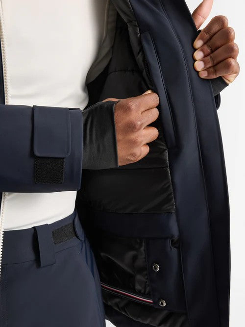 Amwo skijakken er ideell for aktiv skikjøring året rundt. De vatterte skulderdetaljene gjør den til et ikonisk og svært behagelig plagg. Den er laget av stretch-jersey, og de termiske egenskapene gjør den velegnet for kjøligere vær – og for kaldere forhold når den kombineres med et termisk innerlag. De sveisede sømmene og de mange tekniske detaljene gjør den til en perfekt følgesvenn i fjellet. Normal i størrelsen.