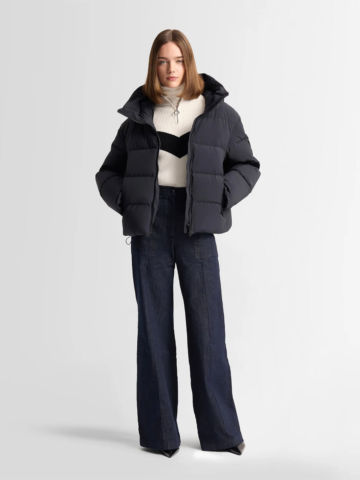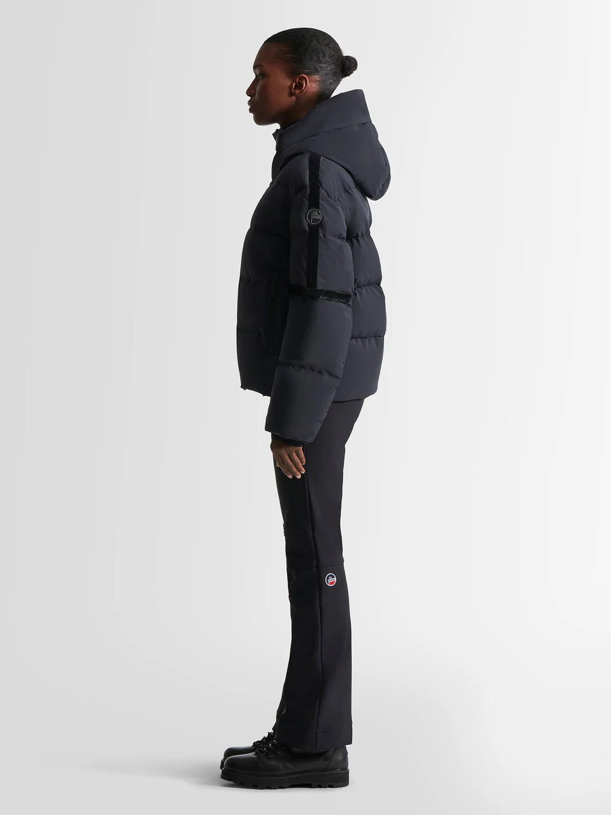 Barsy er en av Fusalps ikoniske design og viser frem en oversized, kort silhuett med høy krage og hette. Jakken har innerlommer, vindstoppere, skipasslomme og snøring nederst. Den rikelige dunfyllingen og det vanntette stoffet gir optimal varme og beskyttelse i kaldt og vått vær. Normal i størrelsen. Modellene er 180 cm og har på seg str 38.