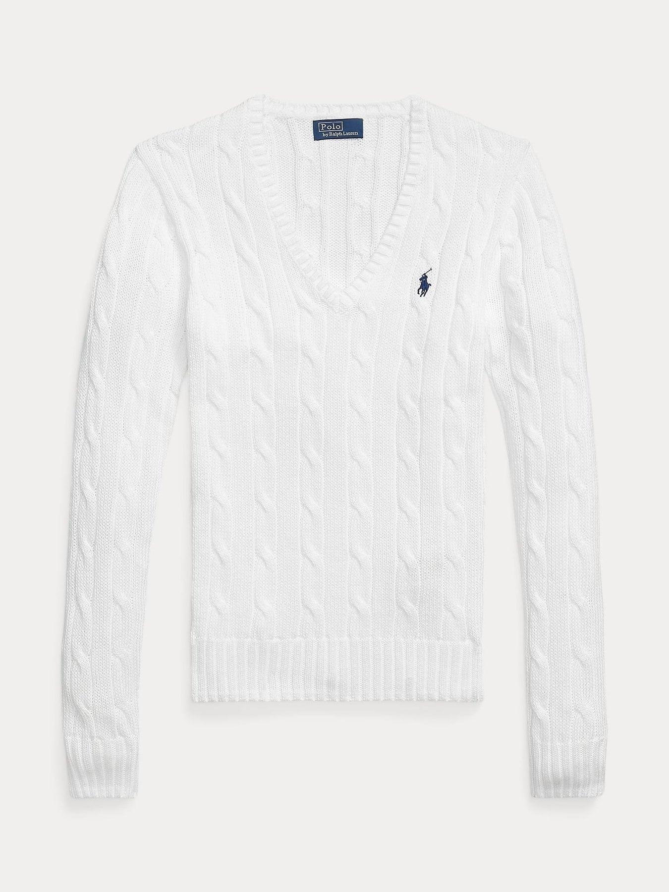 Cable knit cotton v-neck
