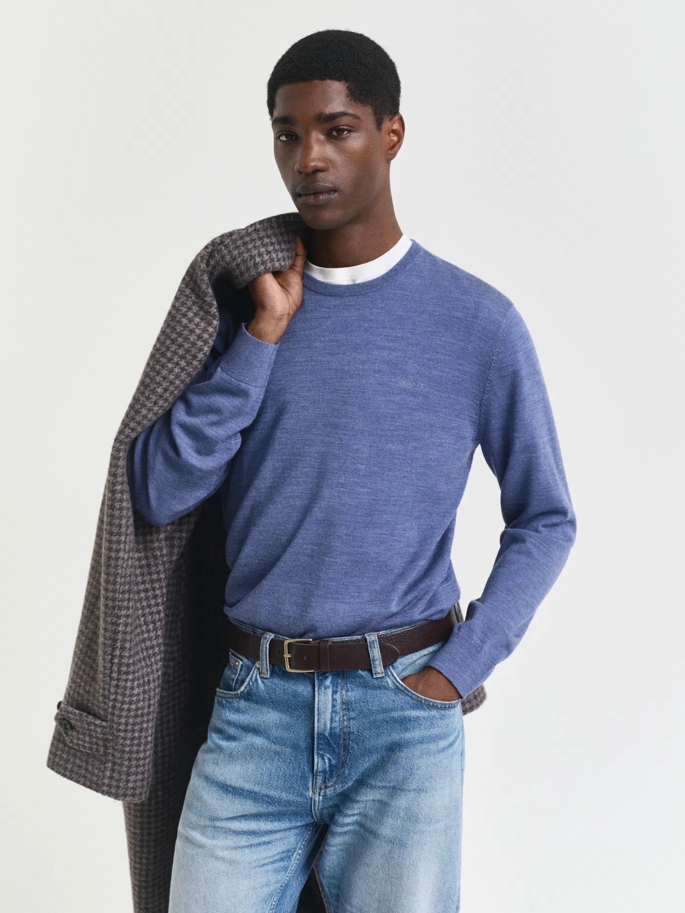 Strikket genser fra Gant som føles supermyk på! Genseren er strikket i ekstra fin merinoull, har rund hals og ribbekant i hals, mansjetter og fald. Gant-logo er brodert på brystet. Normal i størrelsen.