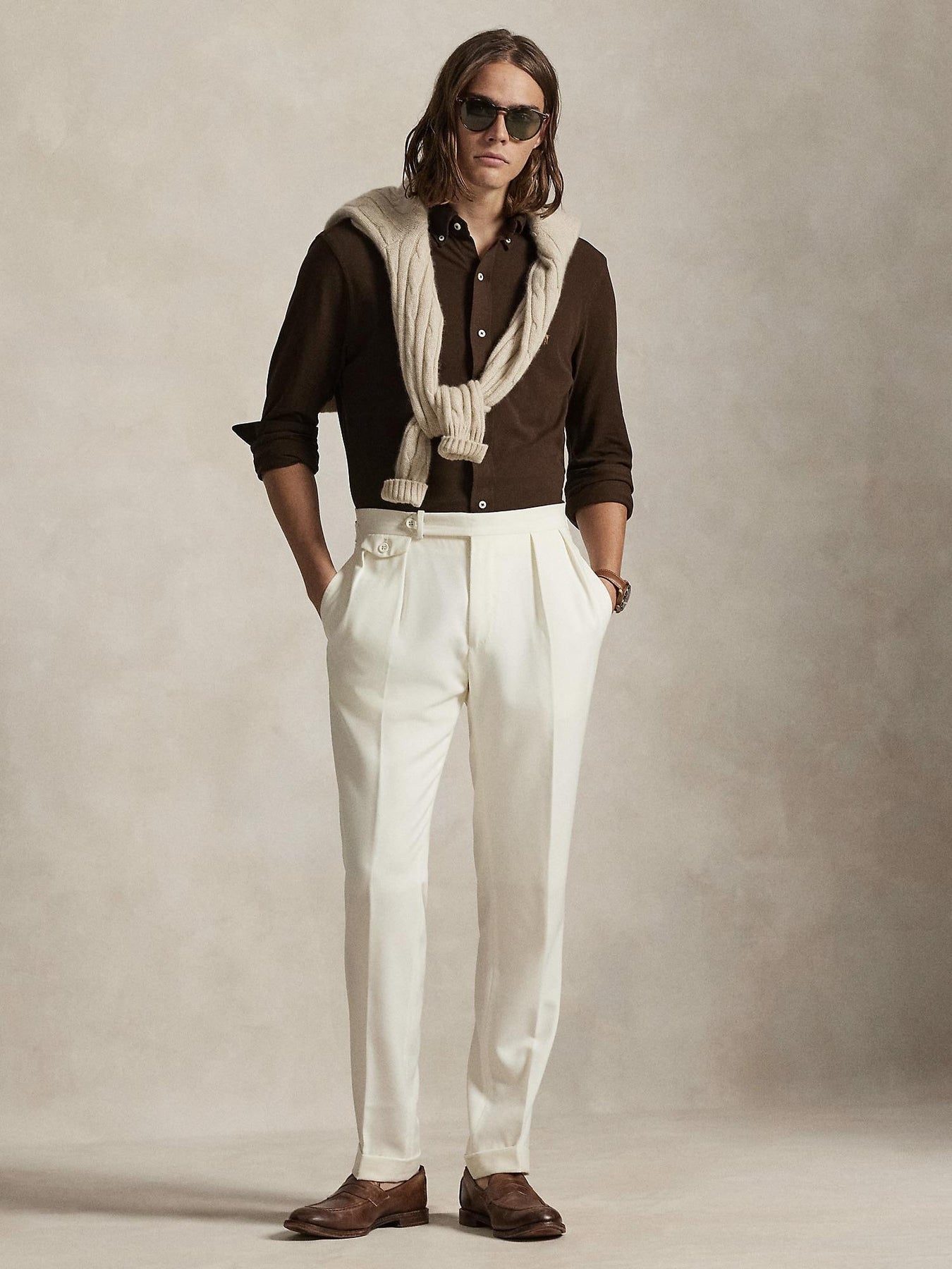 Myk og lett bomullsskjorte fra Polo Ralph Lauren i stretchy mesh kvalitet. En moderne vri på den klassiske oxford skjorten! Button down og har en regular fit. I en flott brunfarge, perfekt til base garderoben men også finere anledninger. Modellen er 185 cm og har på seg str M.