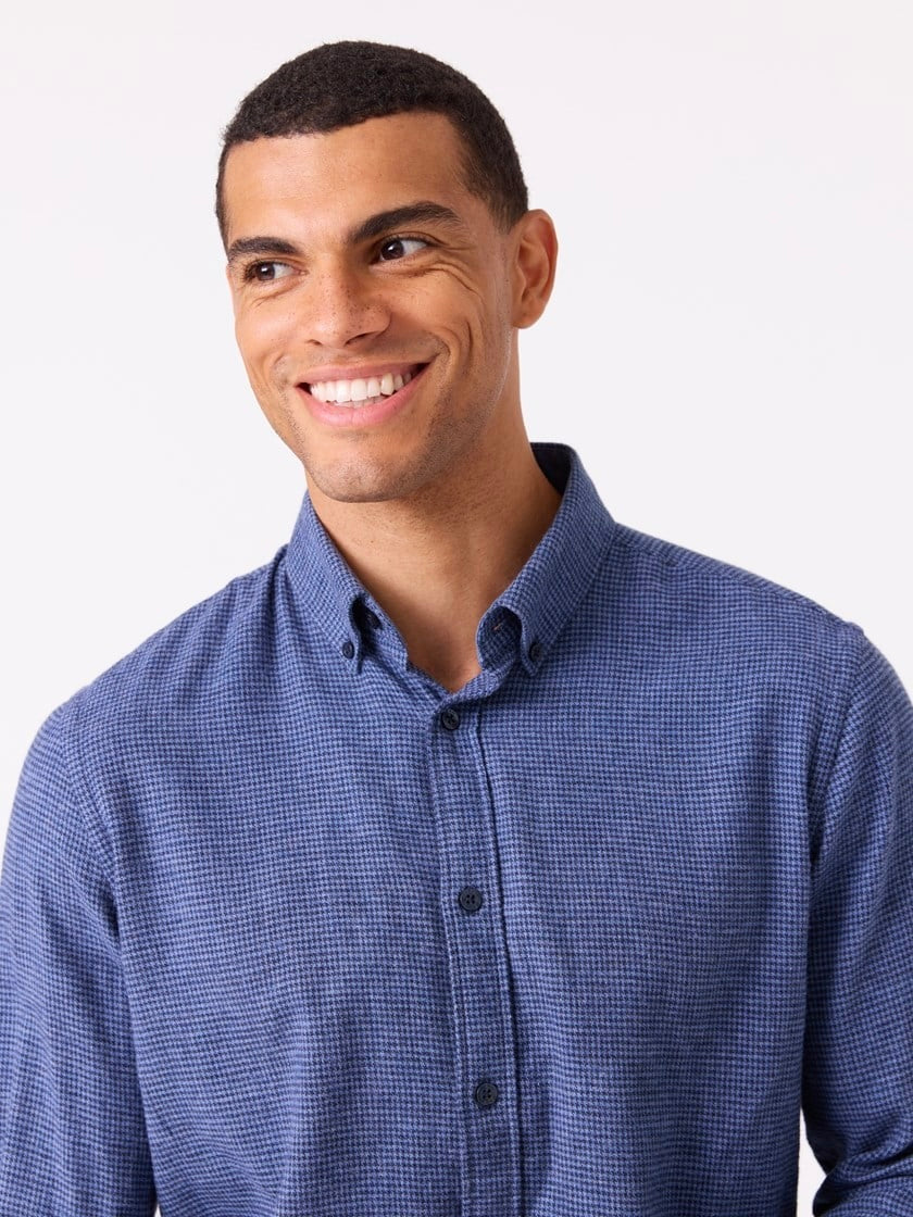 Bomullskjorte med en lett børstet overflate, laget i en mini hundetannsvevet kvalitet. Skjorten har en klassisk buttondown-krage og kontraststoff i nakke og mansjett. Bærestykke bak gir ekstra passform, og regular fit-snittet sikrer en komfortabel og tidløs silhuett. Mansjettene er regulerbare, og et lite flaggbroderi nederst på siden gir en subtil detalj.