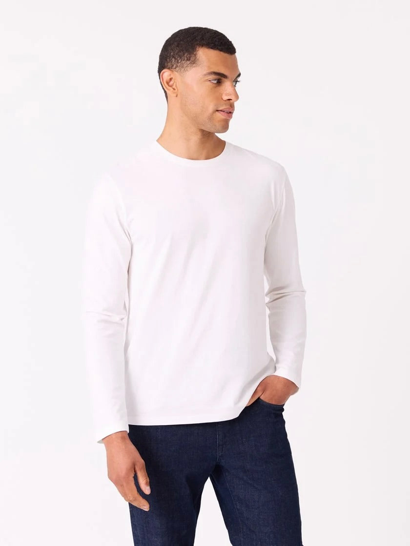 Basic lingerer genser i myk børstet bomull. Genseren har rund hals med smal ribkant. Et basisplagg man bare må ha i garderoben. Normal i størrelsen. Modellen er 188cm og har på seg str L.