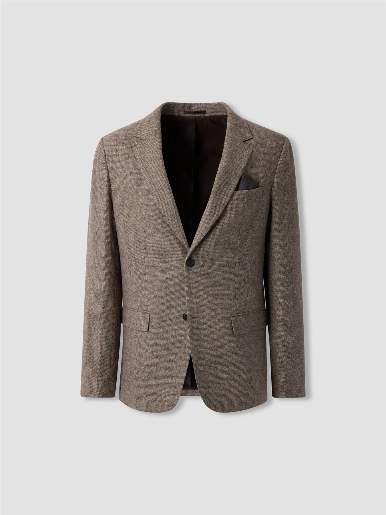 Tidløs blazer i melert ullblanding. Klassisk blazer som er helfôret med lukking foran med to knapper, fire knapper på ermene og to splitter bak. Brystlomme, frontlommer med klaff og to innerlommer. Regular passform for en allsidig stil.