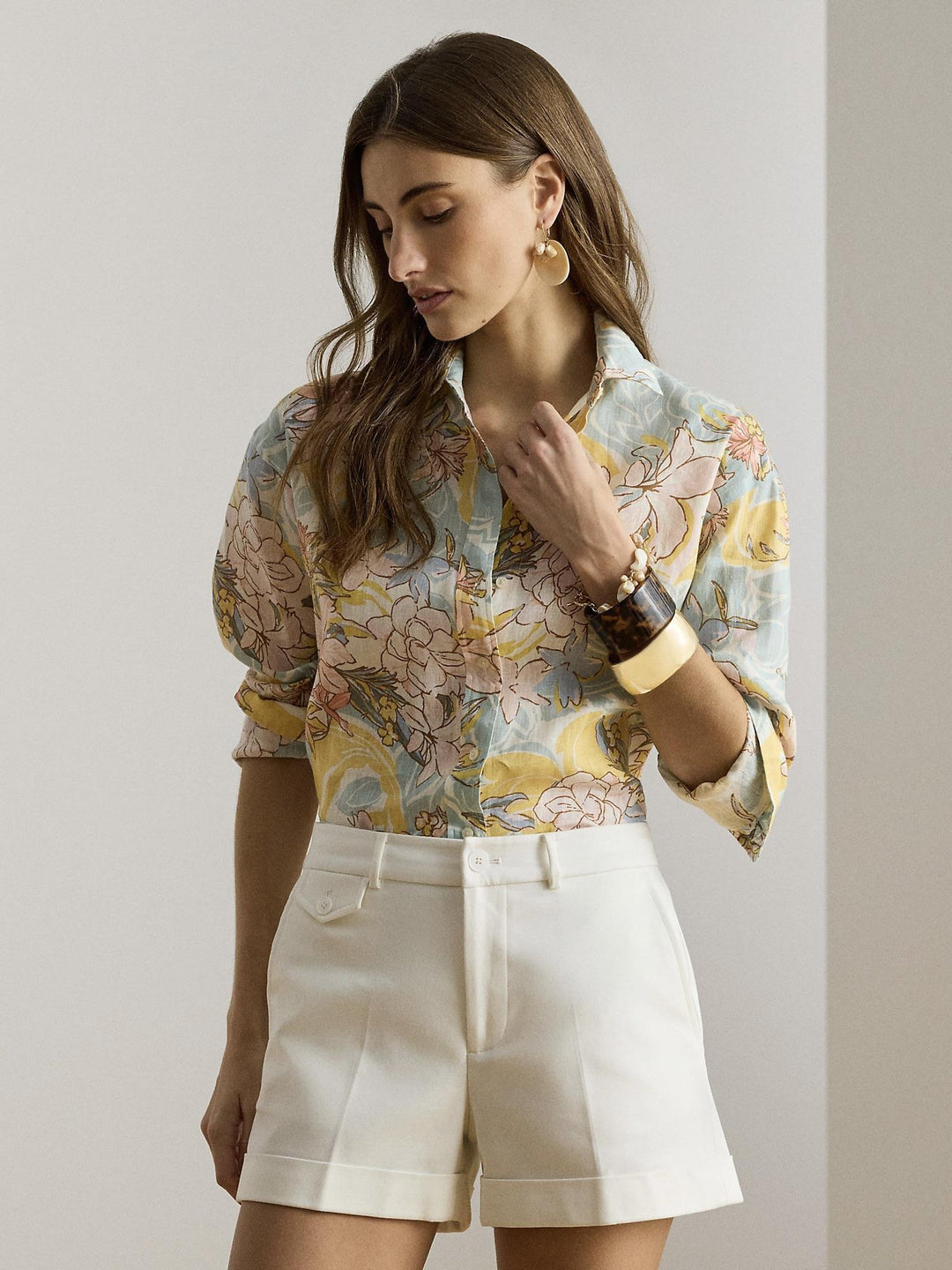 Linen wide leg shorts