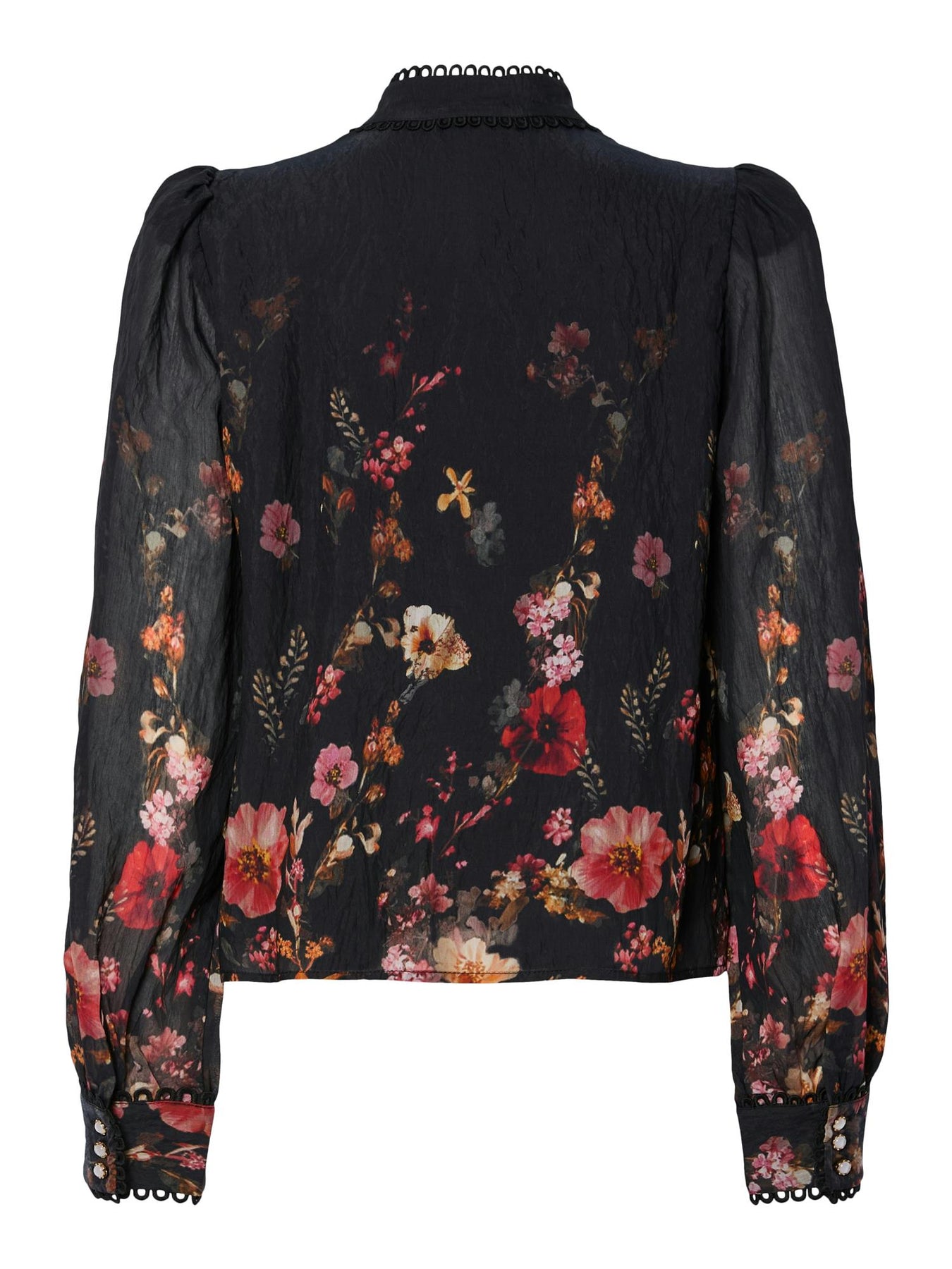 Nydelig bluse fra YAS med dekorativt blomstermønster! Blusen er laget i lett, pustende viskose som faller mykt mot kroppen og gir en behagelig følelse. Den har skjortekrage, lange ermer med knappemansjetter, knappestolpe og normal passform.