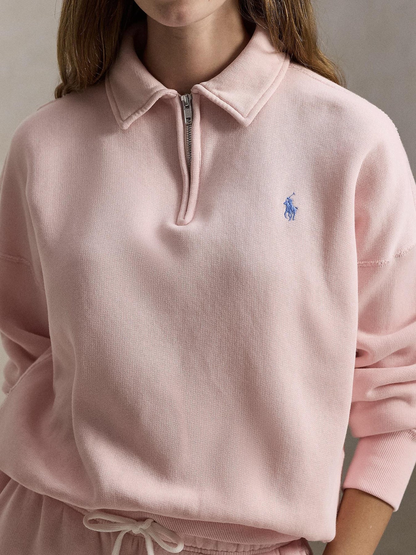 Myk og komfortabel genser i en mellomtykk bomullsblanding. Genseren har glidelås, krage og ribbestrikkede kanter og er dekorert med Polo sin ikoniske Pony brodert på brystet.