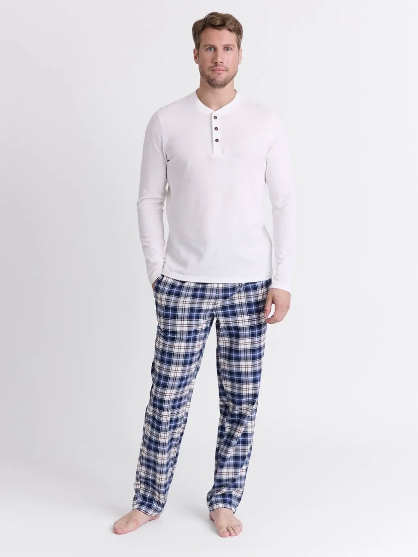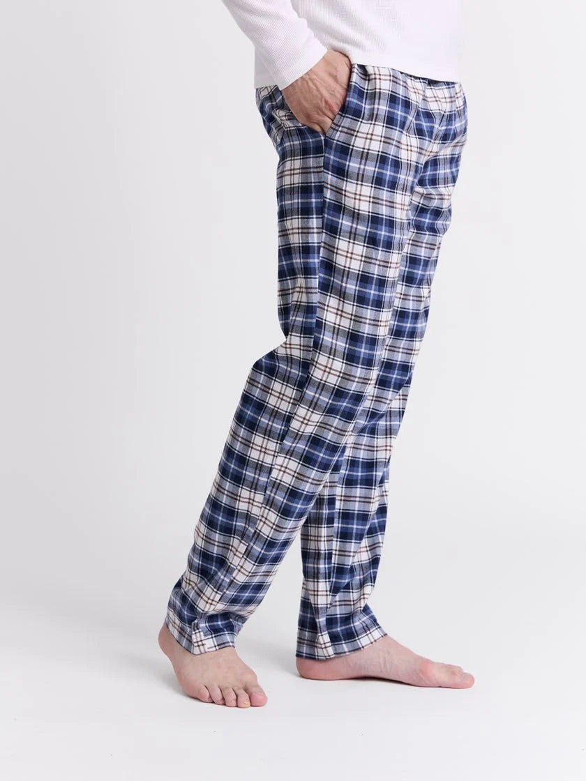Komfortabel rutet pysjbukse i myk børstet bomull. Buksen har rette ben, strikk og snøring i livet og stikklommer.