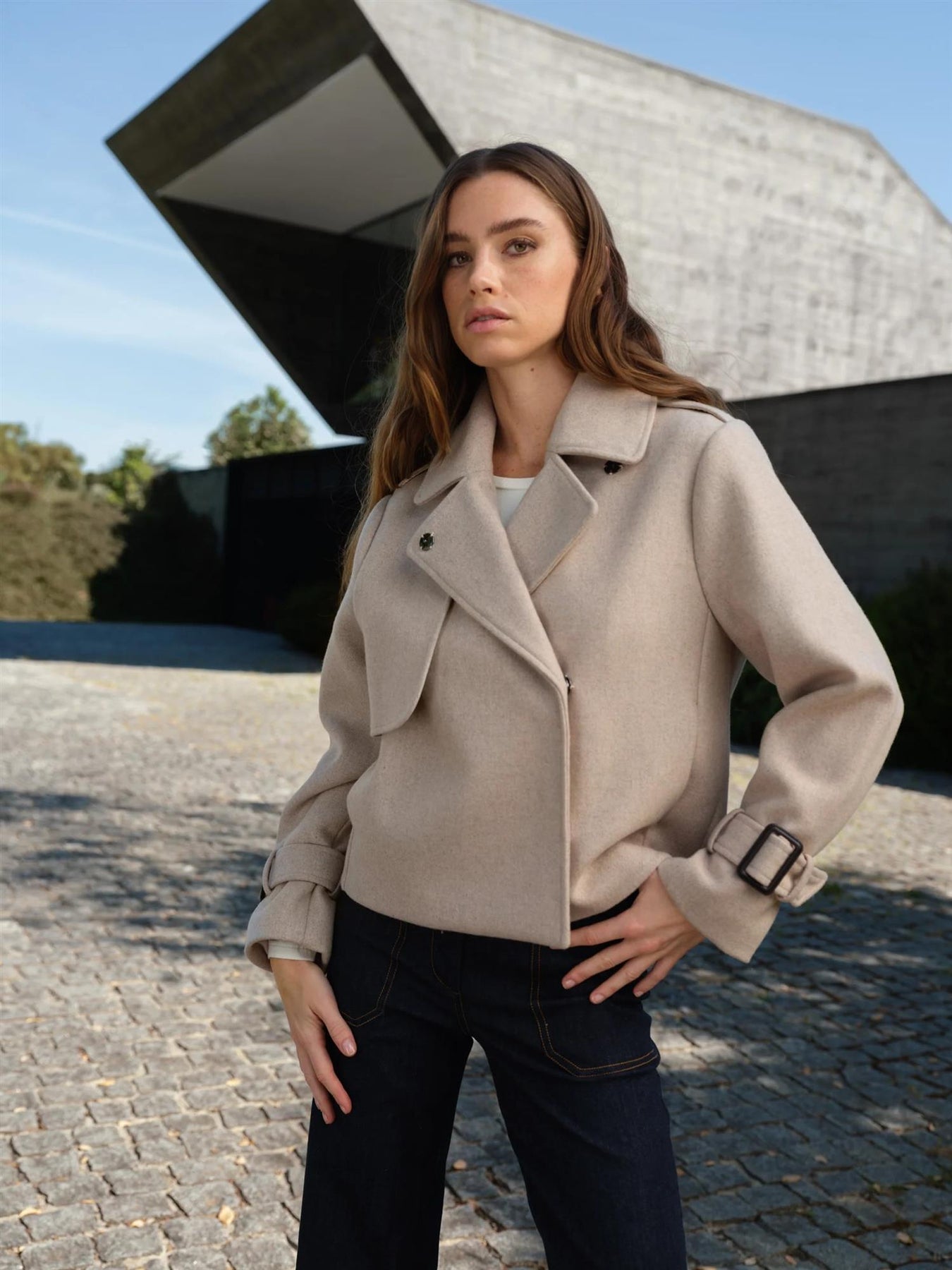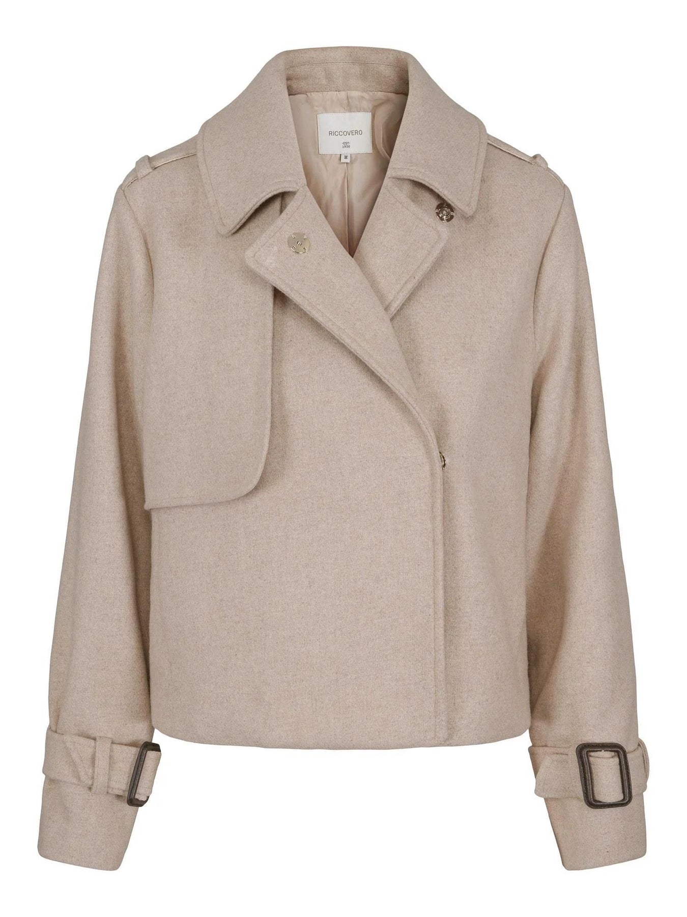 høstfavoritt fra Riccovero! Jakken er laget i en varm, behagelig ullblanding. Den korte modellen i klassisk beige er enkel å style til alle antrekk.
