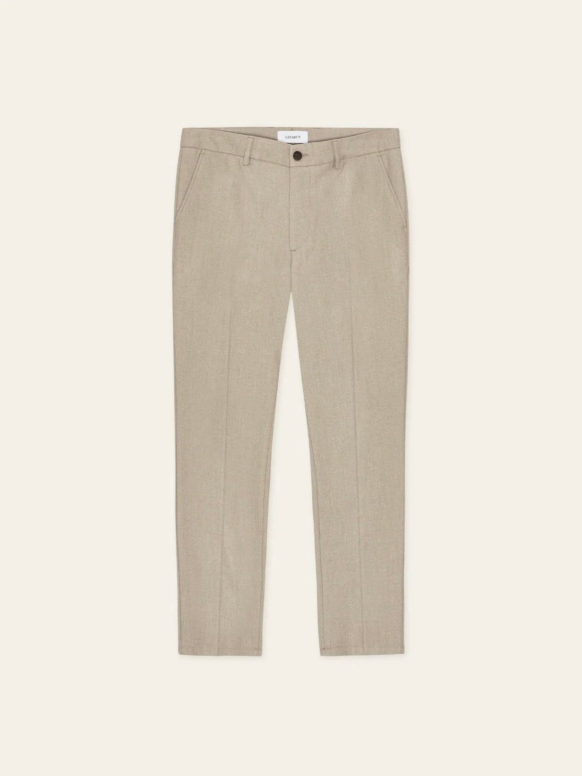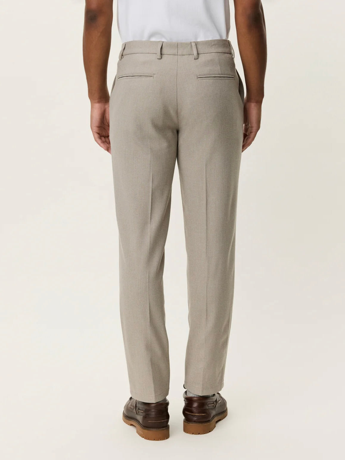 Klassiske dressbukser i stretchy, resirkulert poly-viskose – med formell lukking i livet og pressfolder som gir en elegant silhuett. Regular fit, modellen er 185cm og bruker str 31/32.