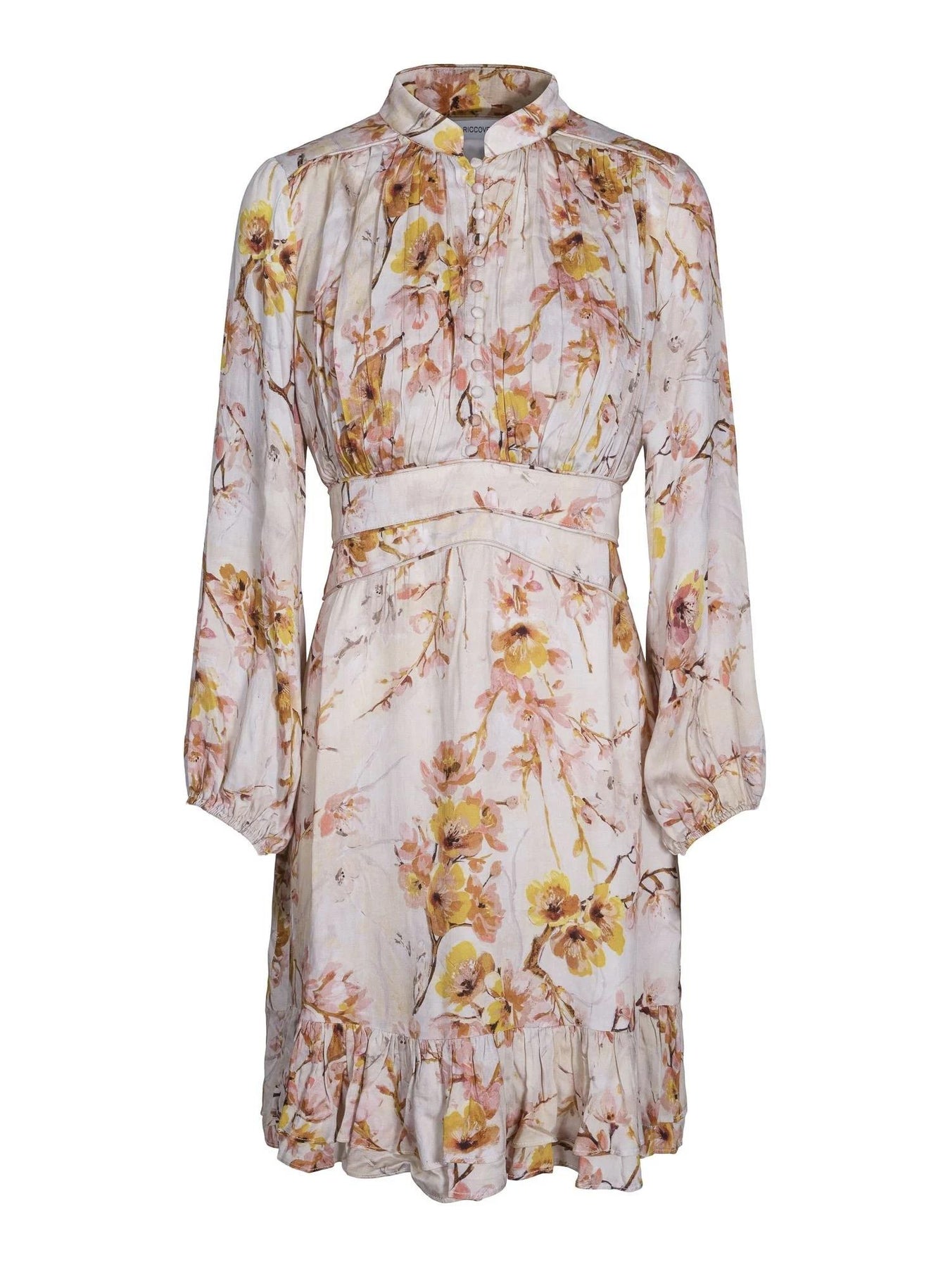 Mari Dress er en elegant kjole med et vakkert blomsterprint. Laget av 100% viskose, gir denne kjolen en lett og behagelig følelse, perfekt for varme dager.