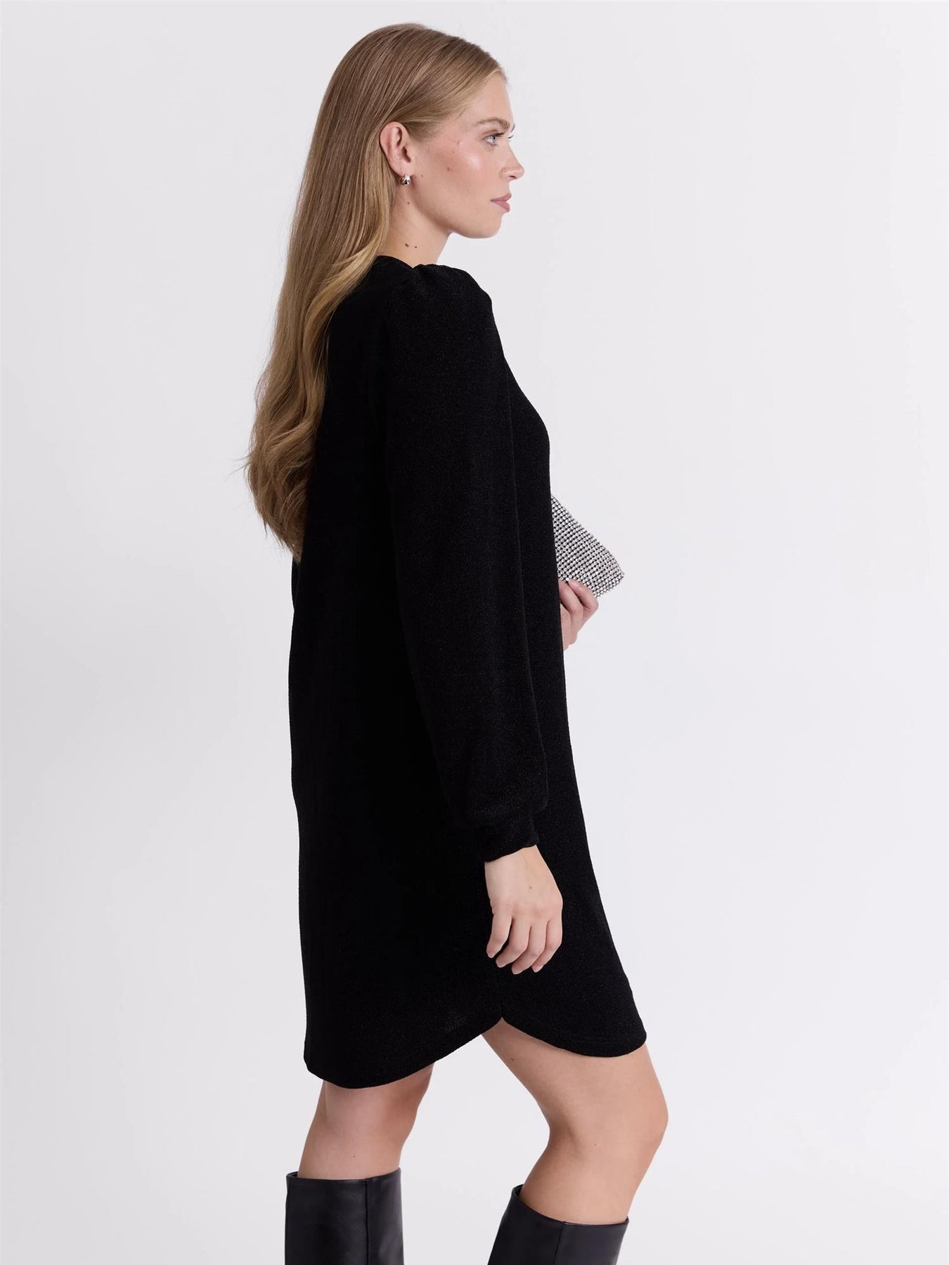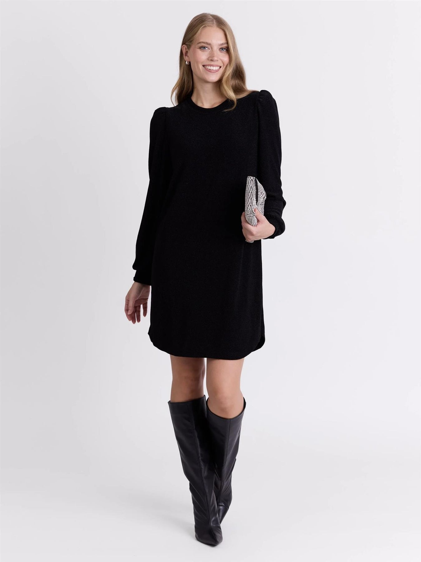 Jerseykjole i mykt stoff med lurexeffekt.