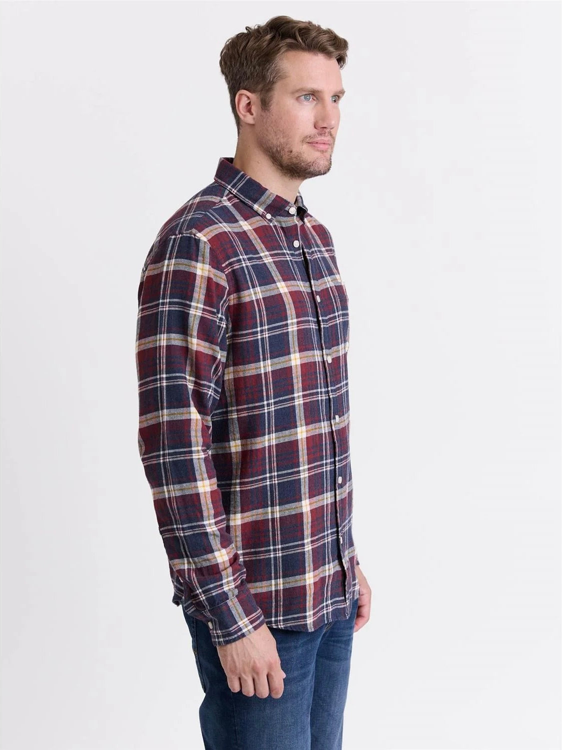 Denne komfortable rutete skjorten er laget i myk, børstet twillkvalitet for en behagelig følelse hele dagen. Den har buttondown-krage, knappestolpe med lyse knapper, regulerbare mansjetter og en brystlomme med et lite broderi. Skjorten har en klassisk regulær passform, som gjør den enkel å style til både hverdags og mer formelle anledninger. Normal i størrelsen.