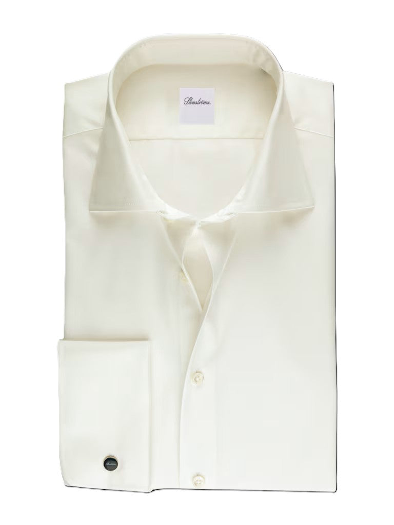 Denne twillskjorten i twofold bomull gir en myk, holdbar og elegant kvalitet som passer perfekt til både formelle og mer stilige hverdagsantrekk. Skjorten har en moderate cut away‑krage (No. 77) som gir et moderne uttrykk, samt franske mansjetter (dobbel mansjett) som tilfører et eksklusivt preg. Perlemorsknapper gir en klassisk, sofistikert finish som hever helhetsinntrykket av plagget. Twill‑veven gir stoffet en subtil struktur som faller pent og gir et raffinert uttrykk.
