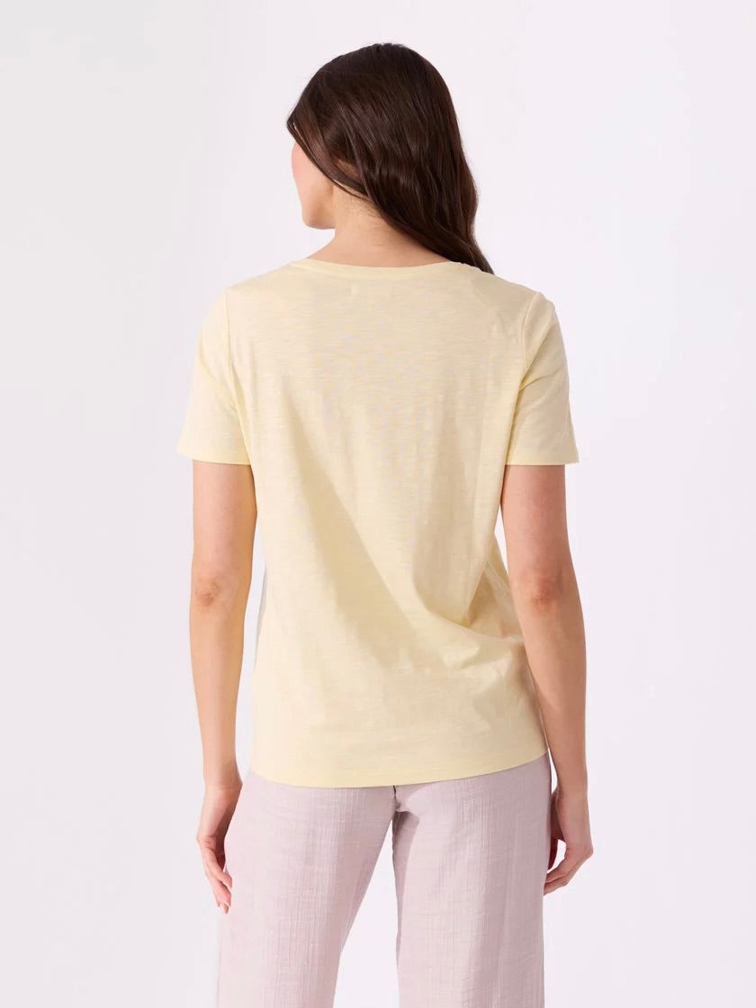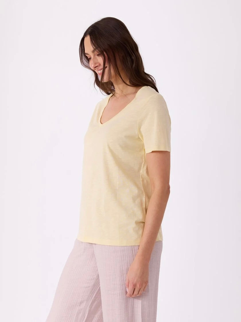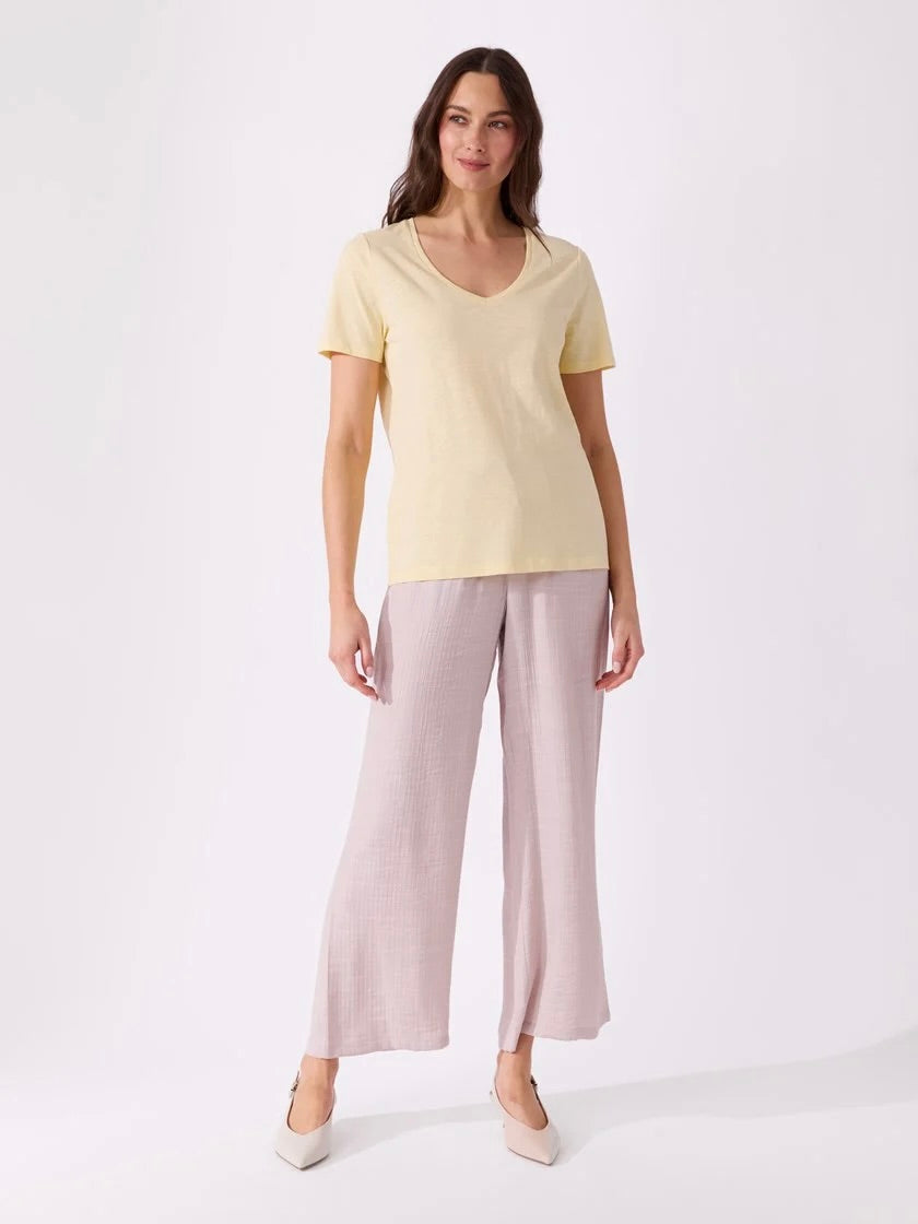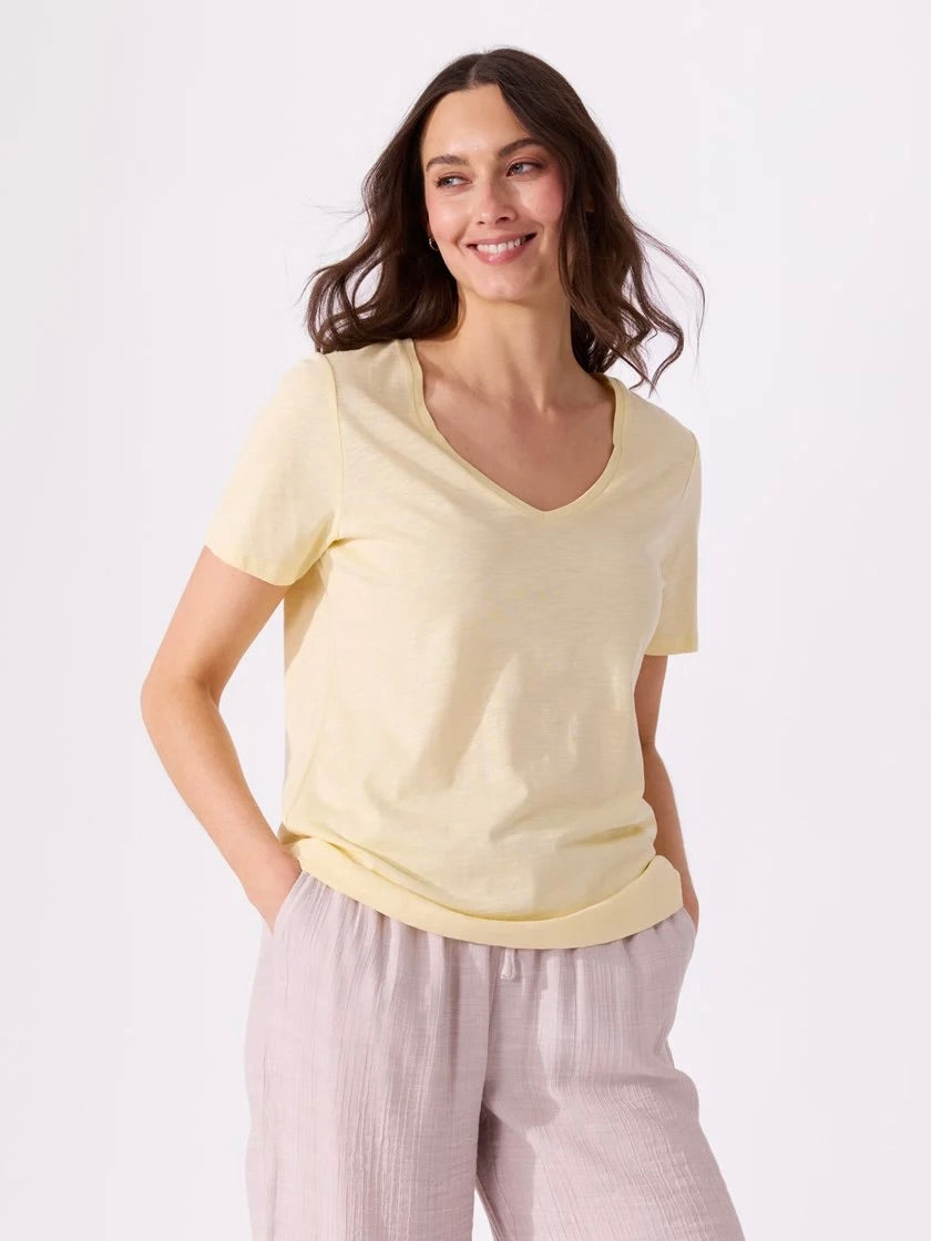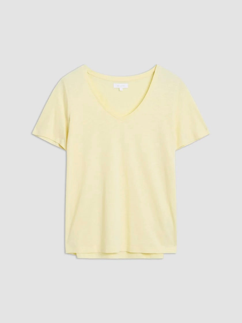 Ava v-hals t-skjorte er en allsidig og komfortabel t-skjorte laget av en blanding av organisk bomull og modal. Denne t-skjorten er perfekt for hverdagsbruk og gir en myk og behagelig følelse mot huden.