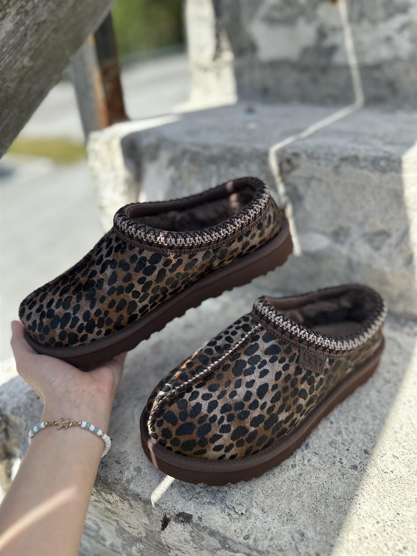 W Tasman Caspian er en tøffel for alle anledninger! Tøffelen har en lett, slitesterk yttersåle som gjør at du kan bruke den både inne og ute. Caspian er foret med naturlig shearling og er laget av mykt semsket skinn med en brodert flette og overdel av mykt kalvehår i kult dyreprint.