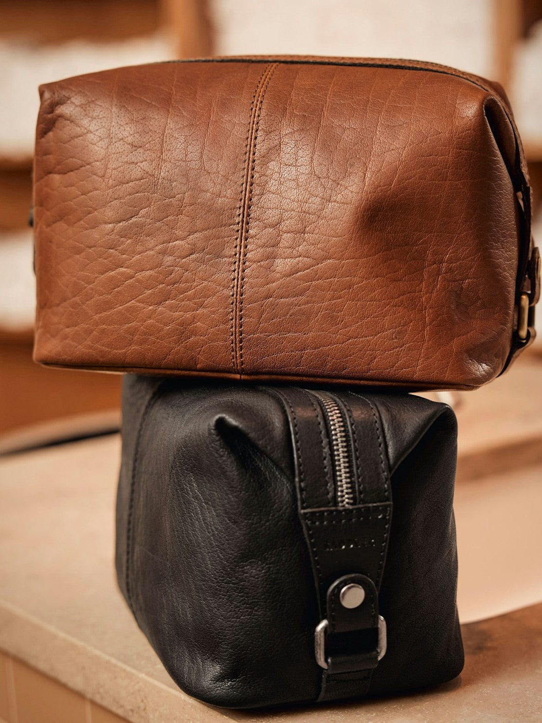 Braga er en romslig og fleksibel toalettmappe i rustikk design, laget av fullnarvet bøffelskinn av høyeste kvalitet. Skinnet har en slitesterk overflate som eldes vakkert over tid. Vesken åpnes bredt for god oversikt og har et lettstelt, nylonfôret interiør med flere lommer.