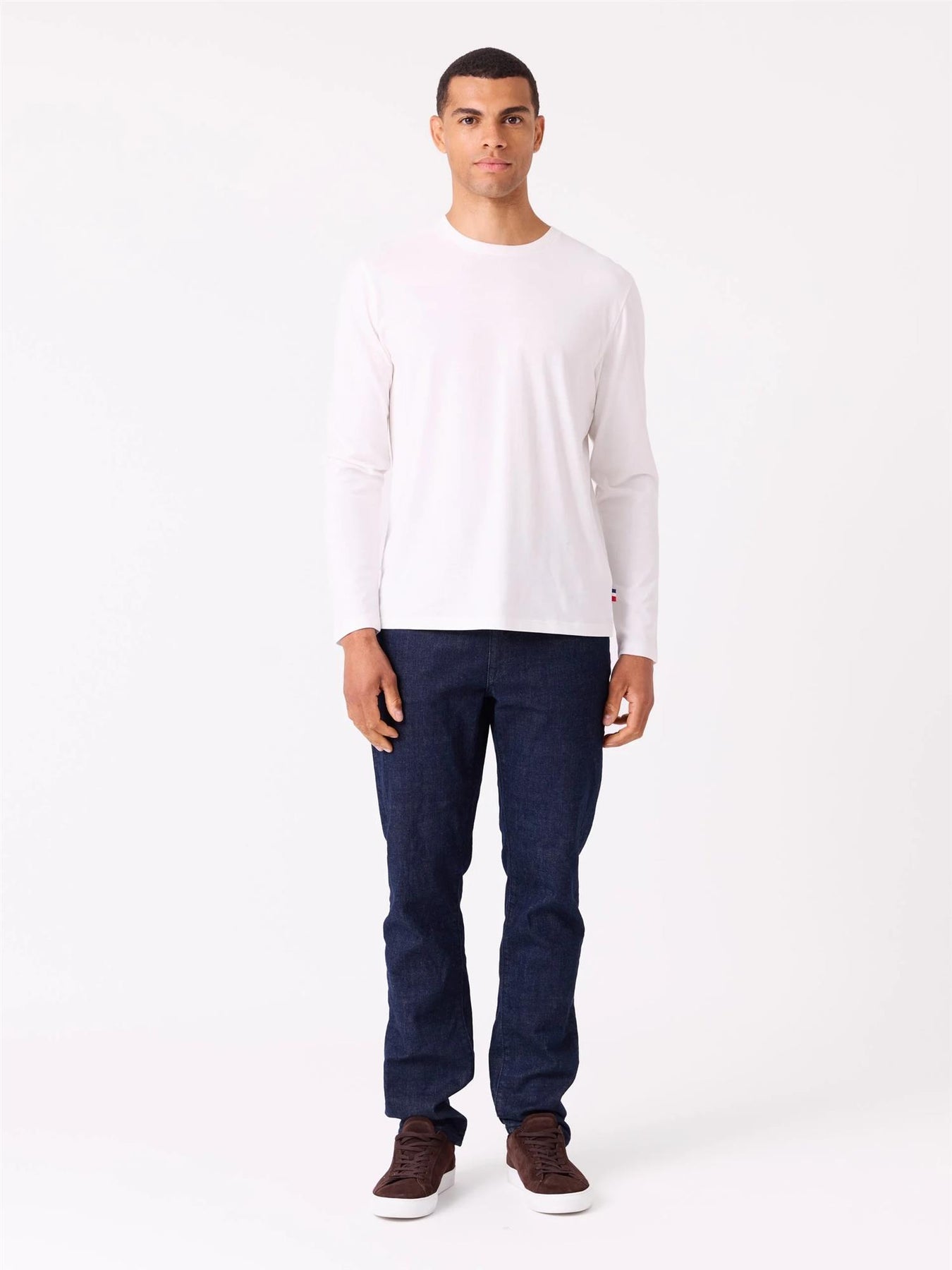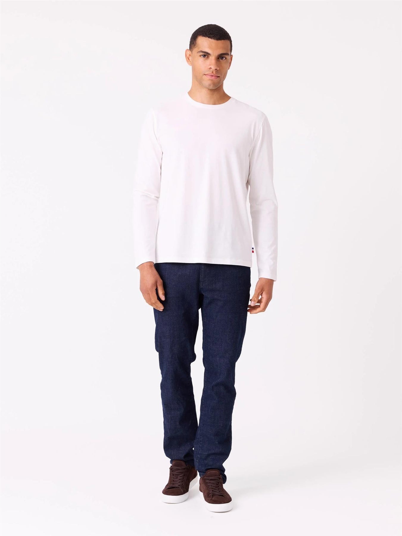 Basic lingerer genser i myk børstet bomull. Genseren har rund hals med smal ribkant. Et basisplagg man bare må ha i garderoben. Normal i størrelsen. Modellen er 188cm og har på seg str L.