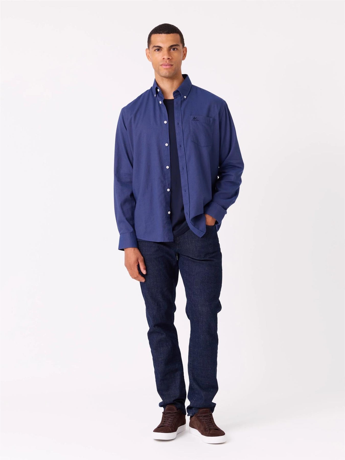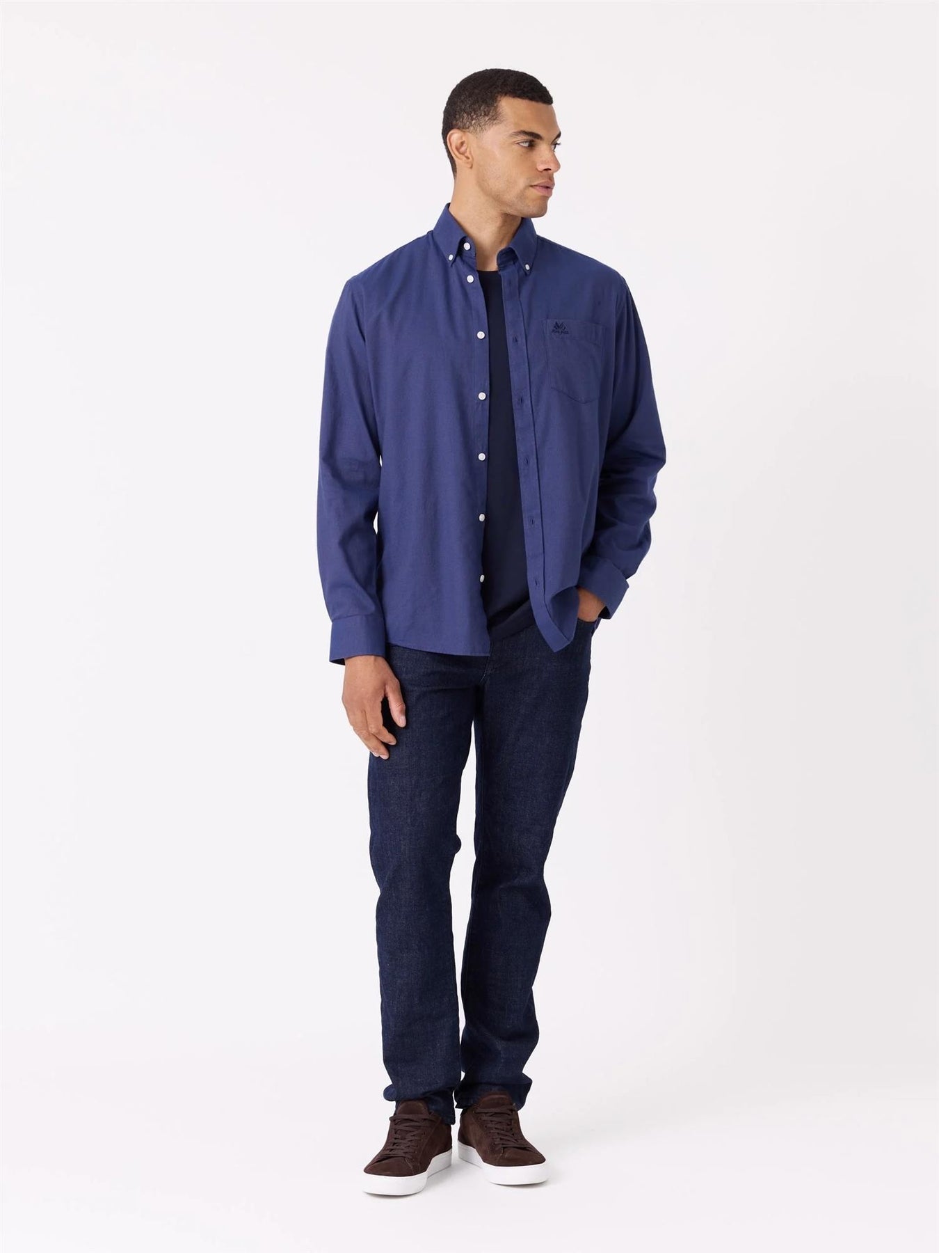 Twillvevet flanellskjorte med button-down krage og lyse knapper. Skjorten har regulerbar mansjett og brystlomme med ett lite broderi. Oppleves som normal i størrelsen og er i classic fit. Modellen er 188cm og har på str M.