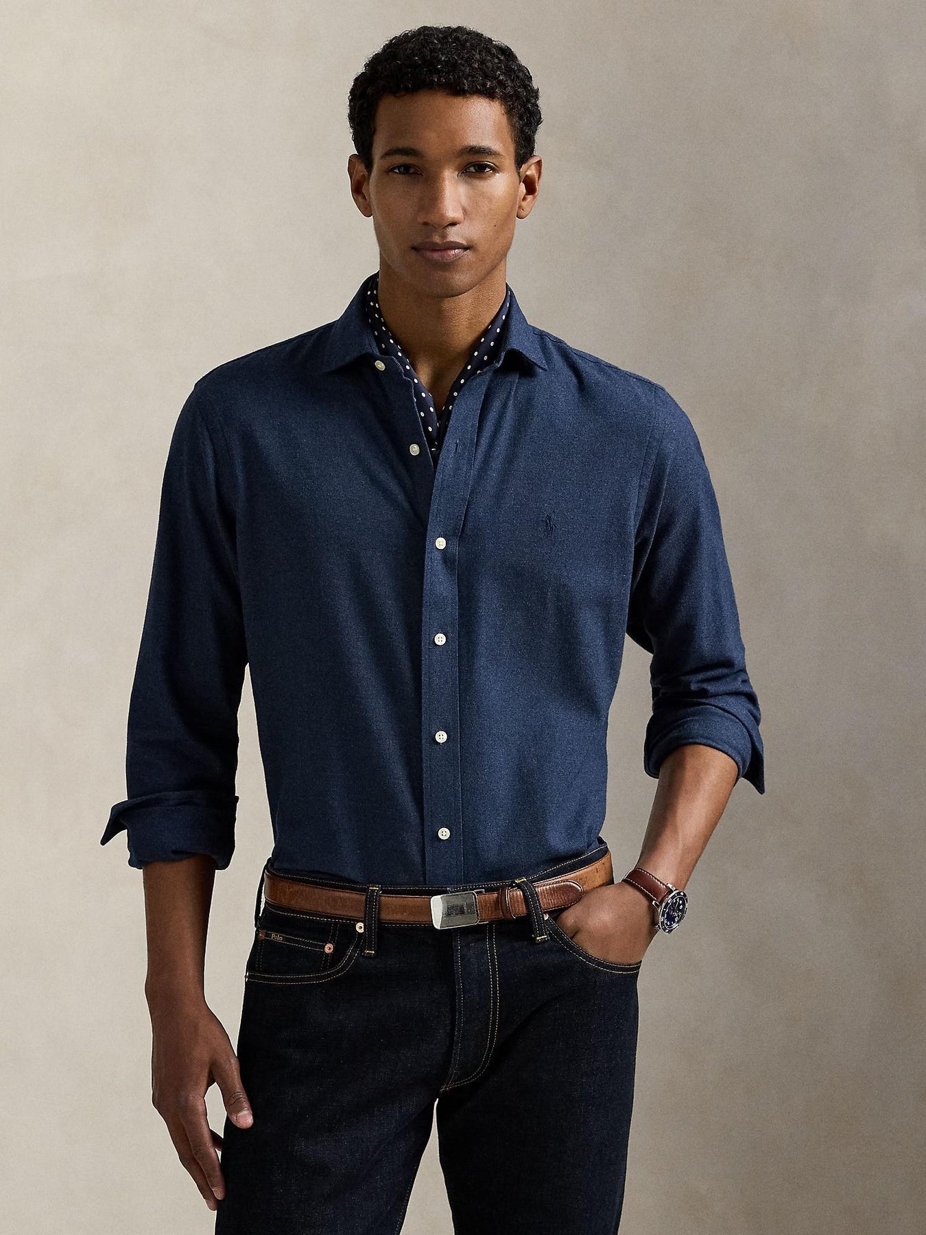 Skjorte i myk, børstet twill med stretch og fukttransporterende egenskaper for optimal komfort hele dagen. Passformen er Custom Fit – smal gjennom livet, men ikke for trang. Med klassisk krage, mansjetter og brodert Polo-logo på brystet. Laget i en lett blanding av bomull og polyester.