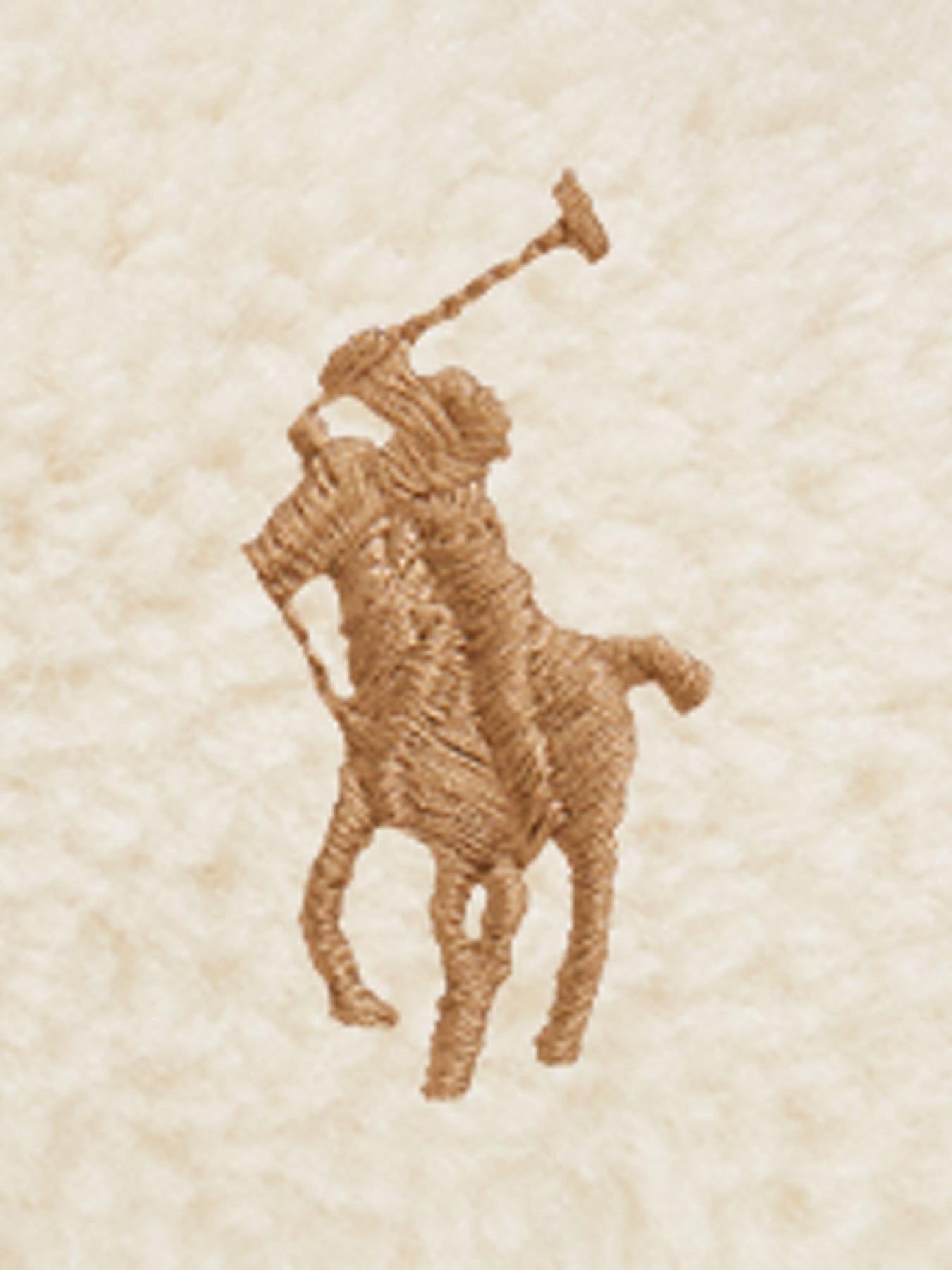 Myke og varme tøfler i pelslignende fuskesaueskinn, med åpen tå og komfortabelt slip-on design. Tøflene har polstret innersåle og gummisåle med mønster for godt grep, perfekt for innendørs bruk. Dekorert med Polo Ralph Laurens signaturlogo brodert på vristen.