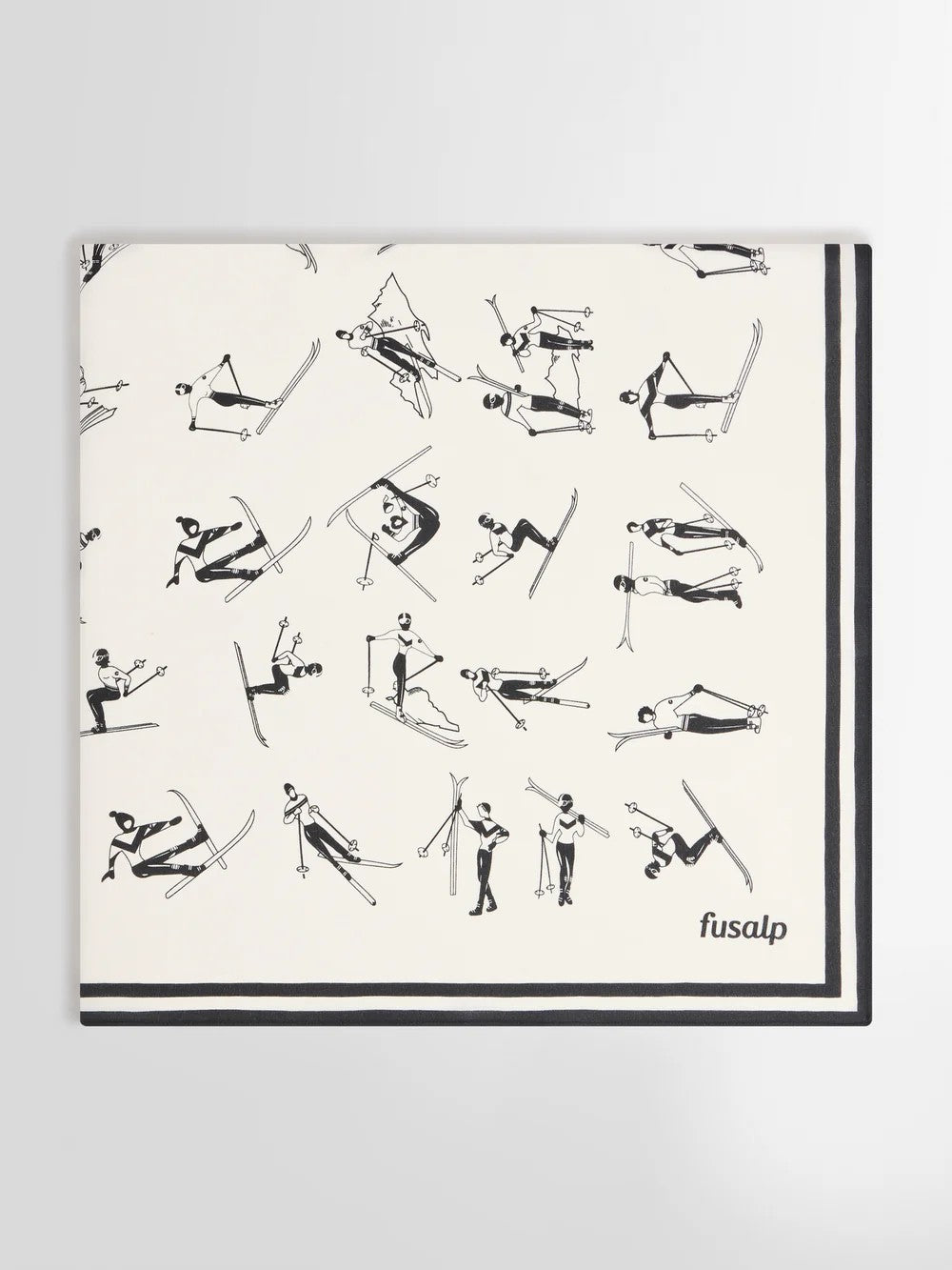 Silkeskjerfet er laget av crepestoff med et elegant skimotiv. Dette skjerfet løfter ethvert antrekk og gir samtidig litt ekstra varme i mellomsesongen. Det kan styles på mange måter – knytt det rundt halsen, i håret eller på håndtaket av vesken din!