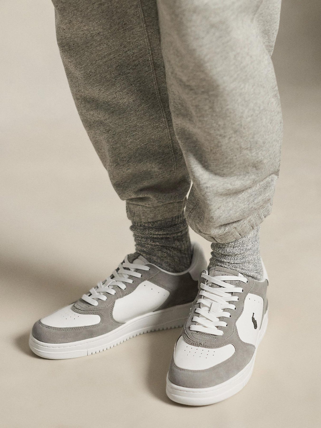 Sneakers fra Polo Ralph Lauren kombinerer urbant uttrykk med førsteklasses materialer. Overdelen i ku-skinn gir en luksuriøs følelse og langvarig holdbarhet, mens gummisålen sikrer godt grep og stabilitet gjennom hele dagen. Fôret i polyester og plast gir støtte og pusteevne, slik at skoene føles lette og behagelige på foten. Den jordgrå fargen kombinert med deckwash-hvitt gjør dem enkle å style til både avslappede og mer oppkledde antrekk, og tilfører enhver look en subtil, elegant edge. En sko som løfter hverdagsgarderoben med stil og kvalitet.