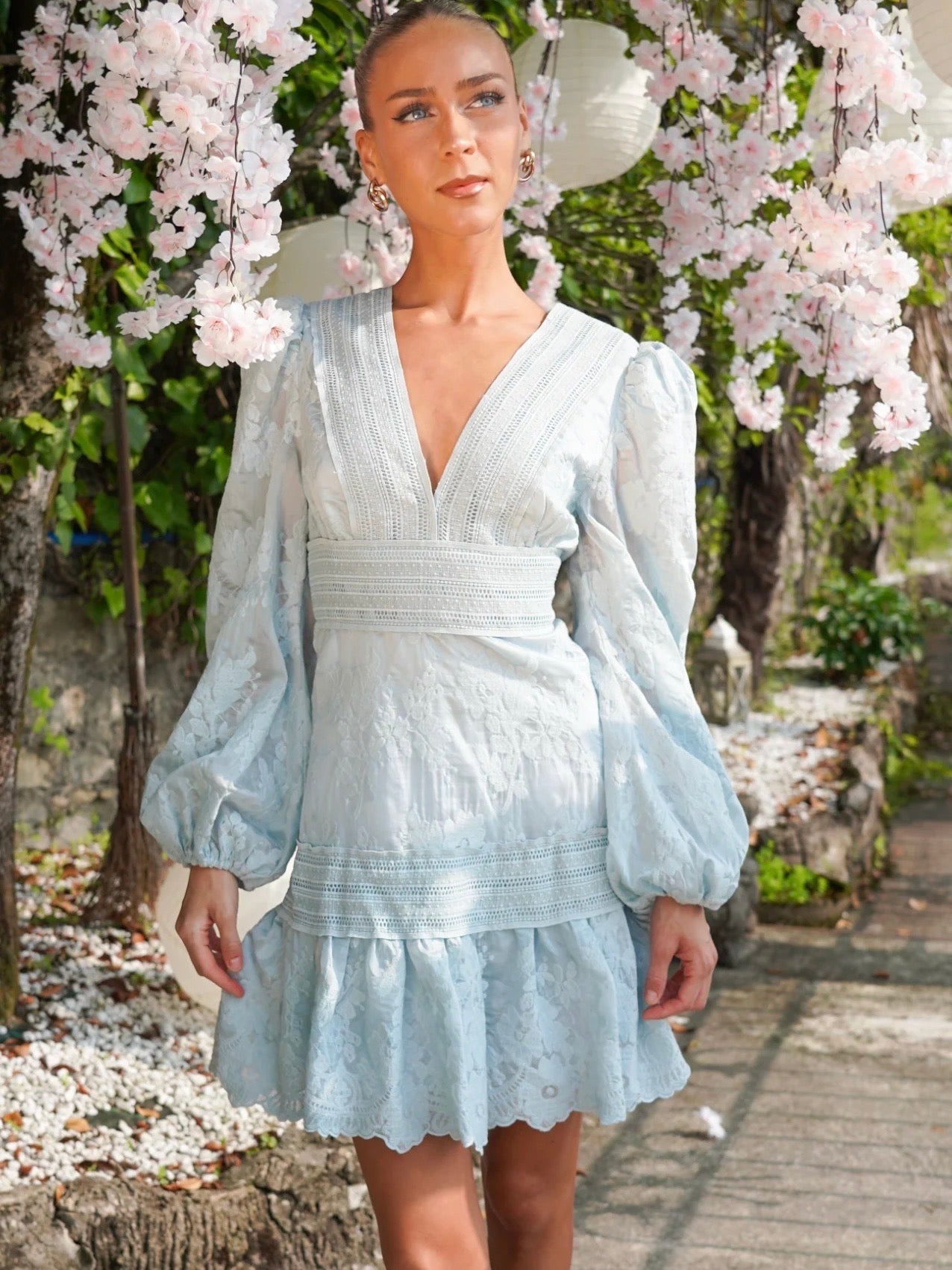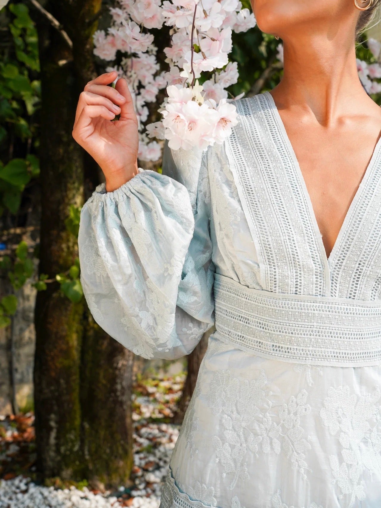 Feminin blondekjole med et elegant og flatterende snitt som passer de fleste fasonger. Fin til konfirmasjon og andre sommerlige anledninger. Kjolen har en liten puff i skuldrene, vide ermer med strikk nederst og glidelås bak. Normal til liten i størrelsen. Kjolen har ikke stretch, og kan derfor oppleves liten. Modellen på det første bildet er 168cm og har på str S.